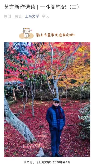2019年,《上海文學》曾發(fā)表莫言的《一斗閣筆記》與《一斗閣筆記(二)》。