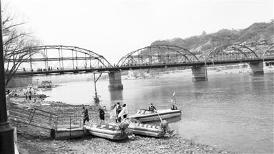 如果時光回到抗戰(zhàn)時期,也是這個地方,遠處人們在取水,近處幾個筏工在忙碌著。