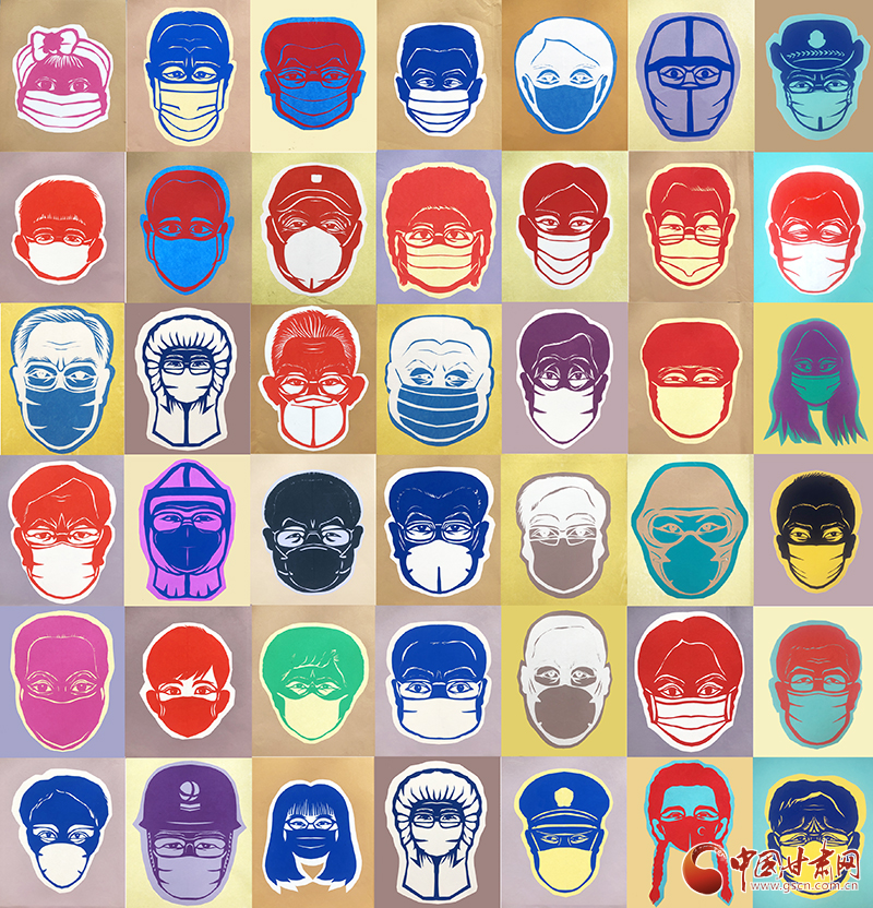 “在新冠肺炎疫情事件中,警察、醫(yī)護(hù)、新聞工作者,鄉(xiāng)鎮(zhèn)、街道社區(qū)工作人員以及街上擦肩而過的路人,他們的面孔被口罩遮蓋著,但口罩上的眼睛既靈動(dòng)又有故事,每個(gè)眼神都充滿了力量,我就萌發(fā)了用剪紙的形式,來呈現(xiàn)人物眼神和個(gè)性的想法。”何霞告訴記者,戰(zhàn)“疫”人物系列作品的名稱初定為《平等》。