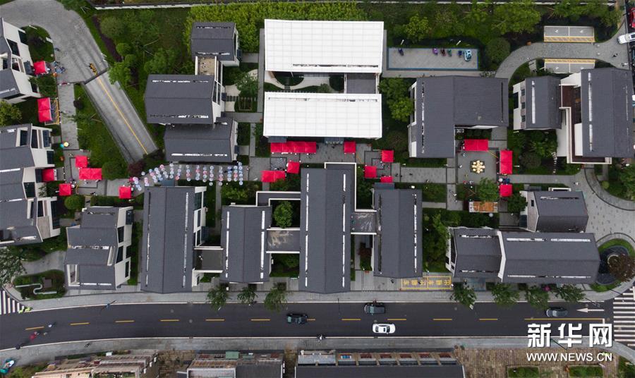 6月6日,空中俯瞰瓶窯老街內(nèi)的非遺館群(無人機(jī)照片)。新華社記者 徐昱 攝