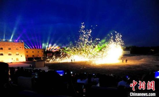 圖為沙漠實景劇《敦煌盛典》的演出現(xiàn)場,觀眾在“穿越”古今的賞劇體驗中感觸絲路文化?!】靛\虎 攝