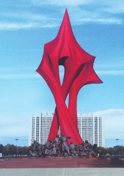 內(nèi)蒙古興安盟是新中國建立的第一個(gè)紅色革命自治區(qū),建于1947年,而位于興安盟行署前烏蘭浩特中心公園廣場就有一座何鄂先生創(chuàng)作的不銹鋼城雕《焰紅興安》,是興安盟獨(dú)具特色的標(biāo)志性紅色建筑。