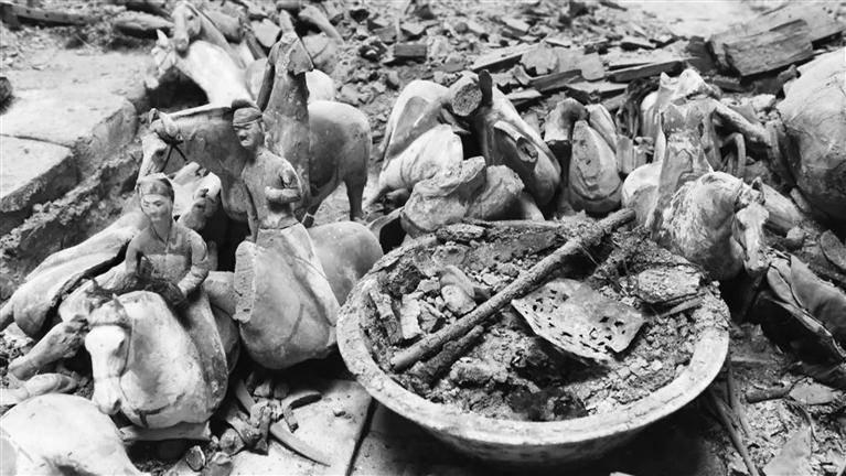 甬道及墓室內隨葬品眾多,有彩繪陶、漆木、石、銅、鐵、金銀器及革制和絲麻織品等,共計220余件組。從發(fā)掘現(xiàn)場來看,這座墓葬保存非常完整,沒有被盜和攪擾的痕跡。