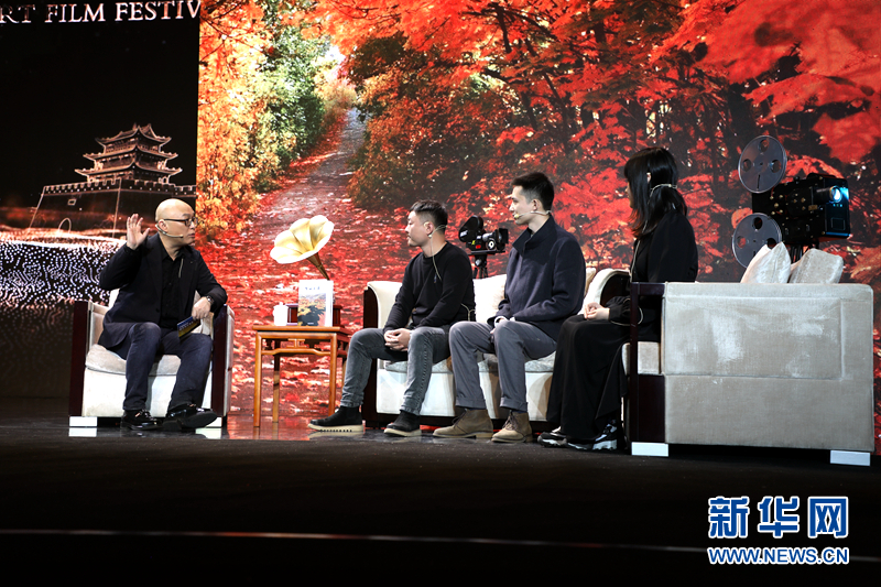 主持人與獲獎影片的主創(chuàng)團隊在現(xiàn)場交流分享。新華網(wǎng)(劉欣瑜 攝)