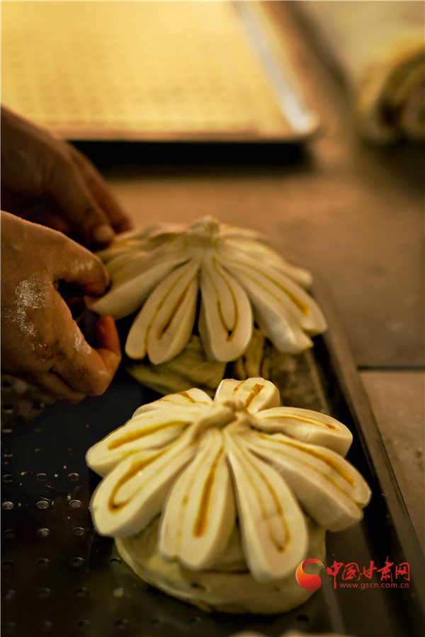 香豆、油酥、姜黃、紅曲、胡麻……最樸實的食材,最傳統(tǒng)的工藝,讓月餅在蒸汽中充分鼓脹,最終飽滿盛開。卷沿彎曲,狀似玫瑰。切開,內(nèi)里豐富,色彩斑斕,如同張掖丹霞,熠彩生輝,包羅萬象。(本網(wǎng)記者 宋芳科 通訊員 張文)