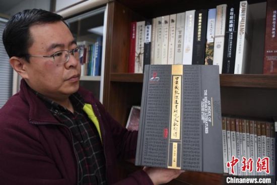 12月31日,甘肅教育出版社副社長(zhǎng)白鑫展示近期出版發(fā)行的《甘肅藏敦煌遺書研究文獻(xiàn)引得》?!钇G敏 攝