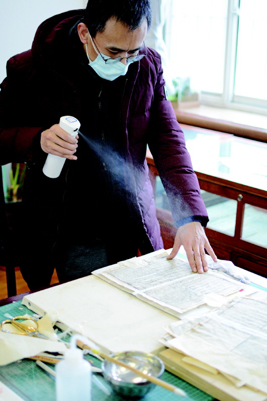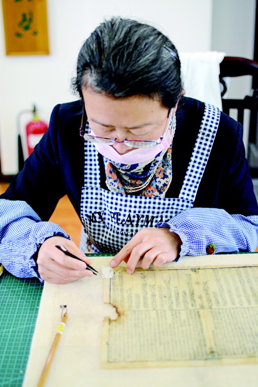 1月5日,記者來到市圖書館古籍部,工作人員正在對破損古籍進行全手工修復。