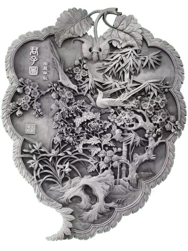 端詳沈占偉的作品,有栩栩如生的花鳥,大氣磅礴的山川,活靈活現(xiàn)的人物,能想到的體裁應(yīng)有盡有??梢哉f(shuō)遠(yuǎn)看端莊大氣,近看細(xì)節(jié)精湛,尤其是對(duì)動(dòng)植物的刻畫,仿佛通過(guò)他的刻刀賦予了生命,在原本冰冷的磚塊上呼之欲出,生機(jī)勃勃。難能可貴的是,他并不會(huì)限制自己的創(chuàng)作體裁,每一幅作品都是匠心之作,都傾盡了他的心血。