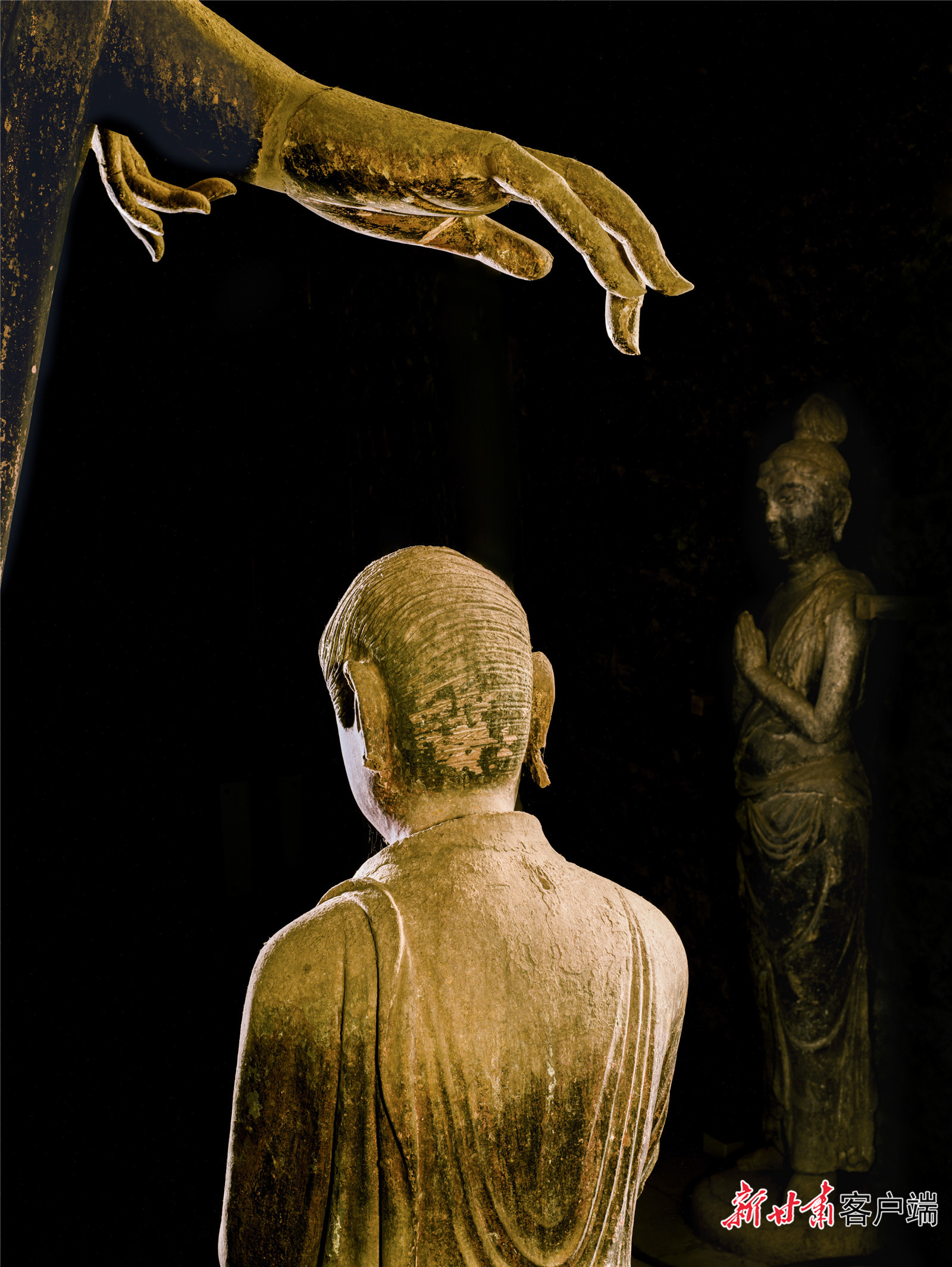 頭腦接受到太多沖擊后,吳健跳出敦煌再看敦煌藝術(shù)。他想,雕塑原來應(yīng)該這么拍!那些雕塑的原型是活生生的人啊,應(yīng)該跟人像拍攝結(jié)合起來。“攝影不同于照相,而是用光去繪畫。”