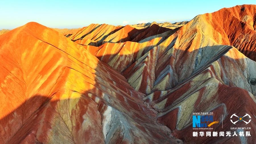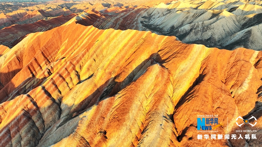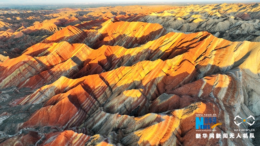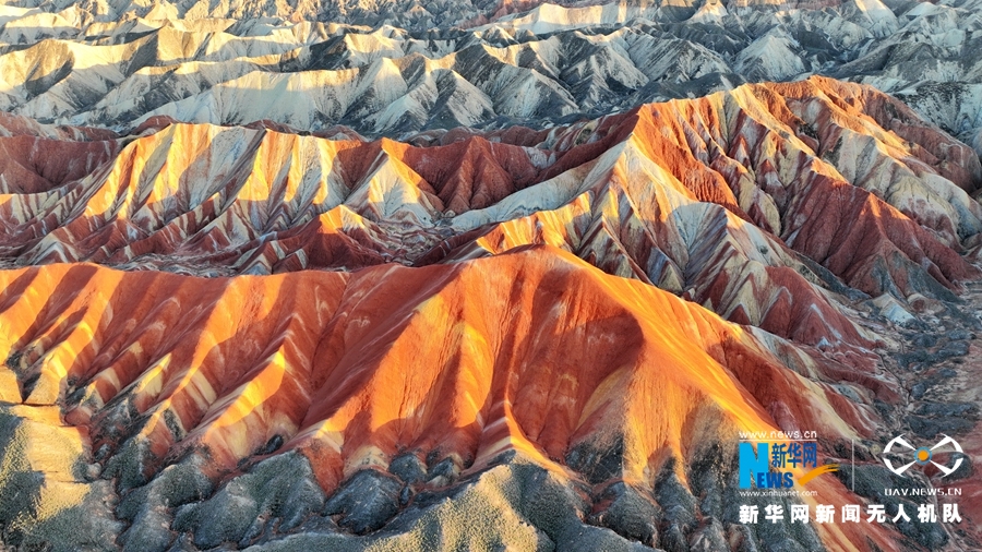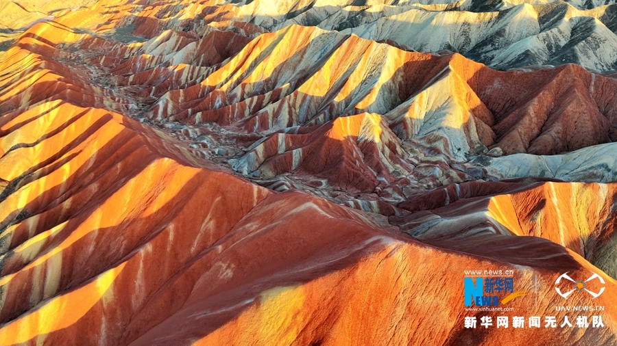 夏日傍晚,在夕陽的映照下,甘肅張掖七彩丹霞色彩艷麗、層理交錯,美不勝收。新華網(wǎng)發(fā)(成林 攝)