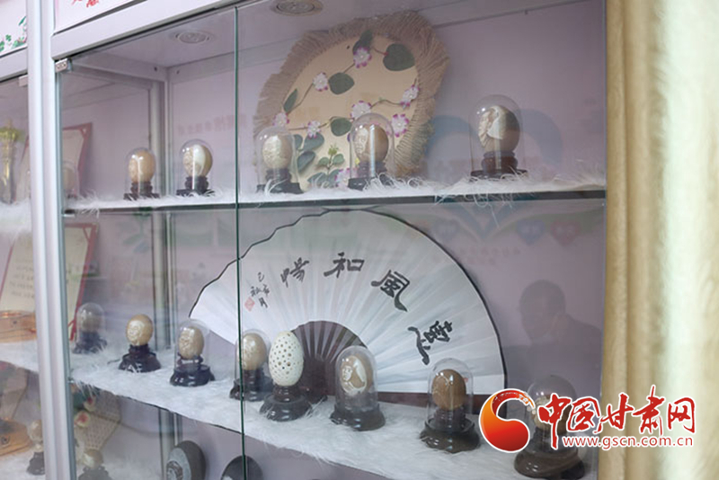 自2018年開(kāi)始,蘭州新區(qū)新安社區(qū)為劉財(cái)萬(wàn)的蛋雕作品專設(shè)了社區(qū)展柜,劉財(cái)萬(wàn)可以為前來(lái)參觀的人們講解作品內(nèi)涵、展示創(chuàng)作過(guò)程。對(duì)劉財(cái)萬(wàn)來(lái)說(shuō),這不但可以更好傳播蛋雕文化,也是分享自己生命體悟、生活方式的一個(gè)出口。