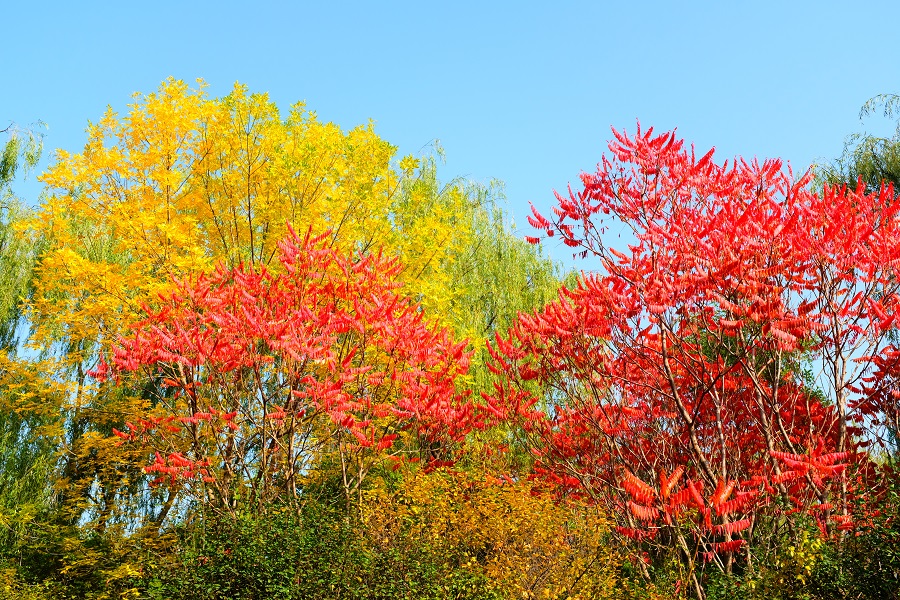 隨便鋪開(kāi)畫(huà)紙,蘸取一點(diǎn)點(diǎn)秋色,藍(lán)天、紅墻、金葉……都是最美的色調(diào)。