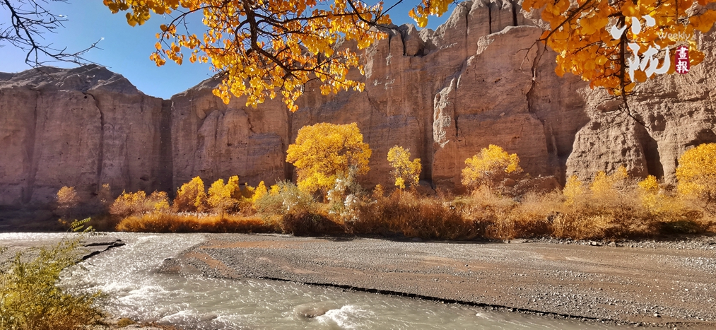 初冬時(shí)節(jié),這里的胡楊林五彩斑斕,金碧輝煌,黃燦燦的樹葉與藍(lán)天、白云相映成趣。在陽光的照耀下,金黃色的樹葉隨風(fēng)搖曳,肆意而優(yōu)雅,為秋天帶來幾分浪漫。身入林中,涼爽的空氣中洋溢著淡淡清香,像溫暖的秋陽,沁人心脾。