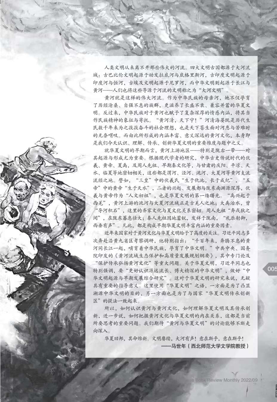 “黃河與華夏文明”系列文章(共9篇),由《博覽群書》編輯部邀約西北師范大學(xué)文學(xué)院馬世年、杜志強(qiáng)等著名專家策劃、組稿,作者有馬世年、杜志強(qiáng)、張景平、延娟芹、張存良、黑金福、劉陽(yáng)杰、蘭蓓蓓等,分別刊發(fā)于《博覽群書》2022年3期、9期。系列文章著眼黃河文化,呼應(yīng)中央關(guān)于研究黃河文化的號(hào)召,探討華夏文明在黃河流域的發(fā)展、發(fā)生與傳承、創(chuàng)新;同時(shí),欄目通過(guò)精準(zhǔn)立意、深入考證和生動(dòng)表達(dá),卓有成效地推介和普及了黃河文化,深化了國(guó)人對(duì)黃河文化的認(rèn)識(shí)。已經(jīng)探討的相關(guān)論題有:歷史上關(guān)于黃河起源的爭(zhēng)議,黃河文化的內(nèi)涵,先周文化,秦早期文化,民族文化,西王母文化,絲路文化等。據(jù)《博覽群書》雜志介紹,鑒于這一主題的人文價(jià)值和巨大影響,編輯部將和學(xué)界更加密切配合,加強(qiáng)相關(guān)欄目,講好學(xué)術(shù)故事,推動(dòng)黃河文化研究形成新局面和新氣象。