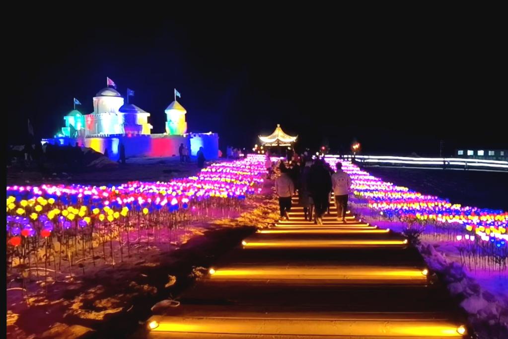 不僅城市周邊和景區(qū)里的冰雪盛會(huì)熱火朝天,一些縣區(qū)通過(guò)發(fā)掘冰雪資源舉辦冰雪旅游節(jié)也漸成時(shí)尚。1月1日,定西市岷縣牧馬灘首屆冰雪旅游節(jié)開(kāi)幕式在麻子川鎮(zhèn)舉行,冰雕城堡、彩色花燈及滑雪道等將昔日牧馬灘裝扮成了一座冬日童話小鎮(zhèn),當(dāng)?shù)厝藗兏?jìng)相前來(lái)參加這場(chǎng)家門口的冰雪盛會(huì)。