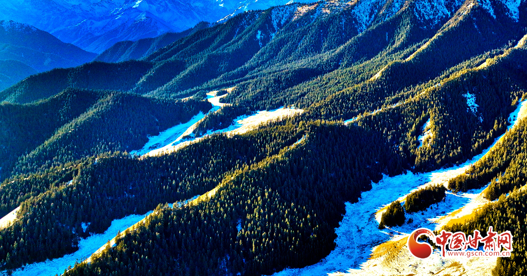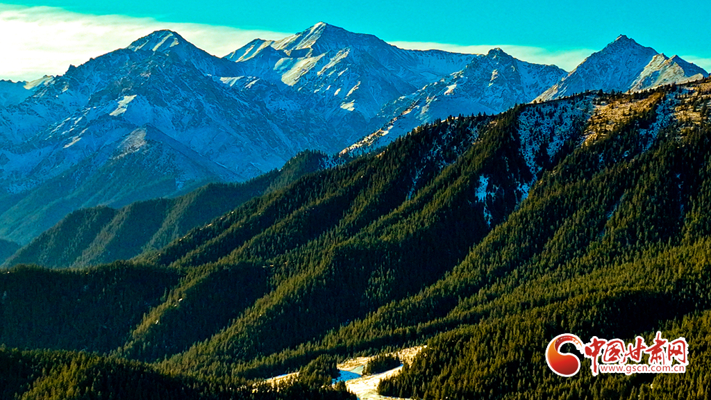 1月21日,雪后的祁連山國(guó)家公園甘肅省張掖段肅南片區(qū),遠(yuǎn)處的巍峨祁連山脈被皚皚白雪層層包裹,蒼松翠柏,浴雪草原,一派山舞銀蛇的壯美北國(guó)風(fēng)光。