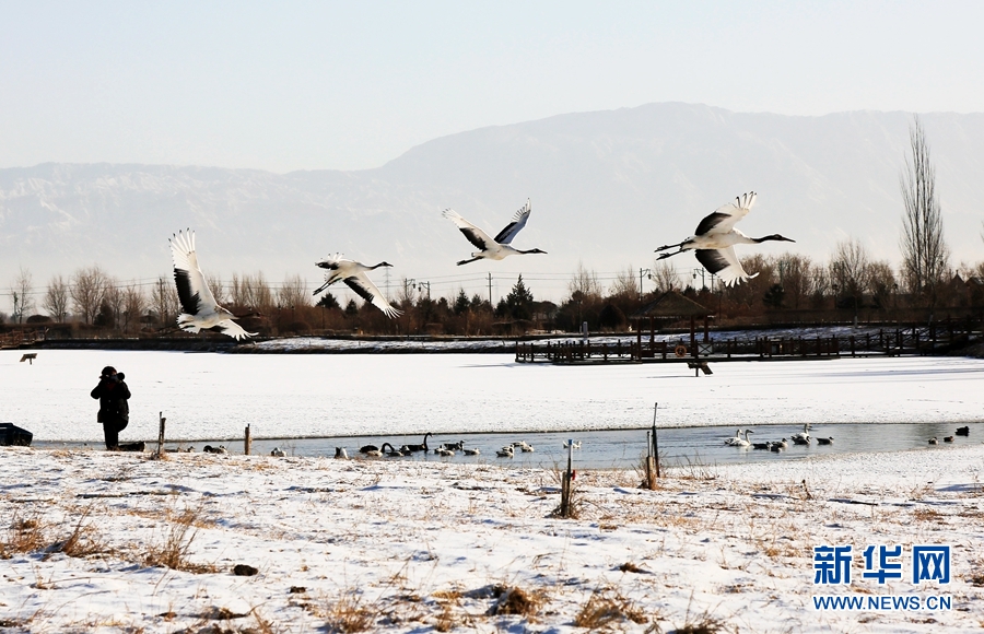 【中央媒體看甘肅】甘肅張掖:丹頂鶴雪地起舞“秀”身姿