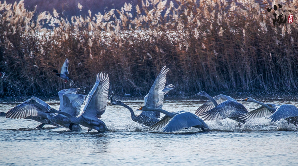 每到春天,成群的候鳥在這里或飛翔或駐足,或低頭覓食,與周邊的濕地形成一道亮麗的冬季風景線。