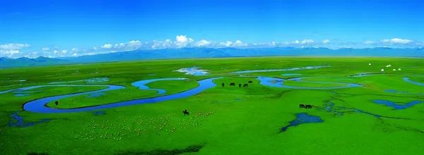 萬(wàn)馬奔騰的山丹軍馬場(chǎng)、牛羊成群的??撇菰?、位處祁連腹地的黑河濕地、定西水草豐茂的狼渡濕地草原……一片片綠洲或是溫婉或是粗獷,它們迎接遠(yuǎn)行的禽鳥(niǎo),等候加急的春風(fēng),它們將甘肅的另一種可能寫在潤(rùn)澤的水土里,栽在豐茂的草場(chǎng)中。