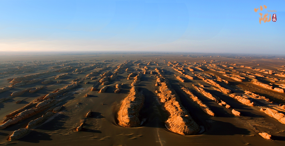 一隊(duì)隊(duì)整齊排列的雅丹像是整裝待發(fā)、氣勢(shì)磅礴的遠(yuǎn)航艦隊(duì),在浩瀚無垠的漠海上劈波斬浪,蔚為壯觀,實(shí)屬罕見。
