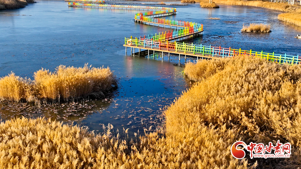 初冬時節(jié),張掖黑河濕地國家級自然保護區(qū)的蘆葦、蒲草等植物在秋風、冬霜的吹拂下都變成了金黃色,密密的蘆花舞動著裊娜的身姿,倩影婆娑,蘆葦叢里鳥鳴啾啾,整個濕地成為了一片金色的童話世界,讓人產(chǎn)生無限遐思。