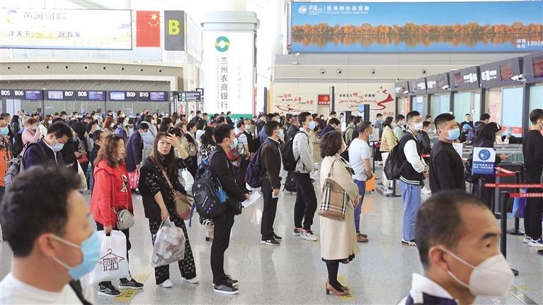 旅客排隊(duì)辦理值機(jī) □照片由省民航機(jī)場(chǎng)集團(tuán)提供