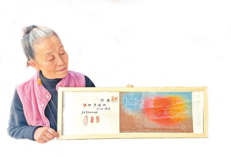 阮琦和她的拓印畫作品。