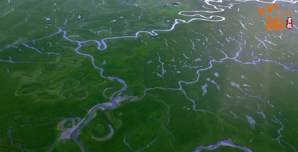 一望無際的濕地、草原穿上土黃色的外套,迎接最冬日的陽光。星星點(diǎn)點(diǎn)的冰凌閃閃發(fā)光,如同千萬顆鉆石鑲嵌在河水中?!?/p>