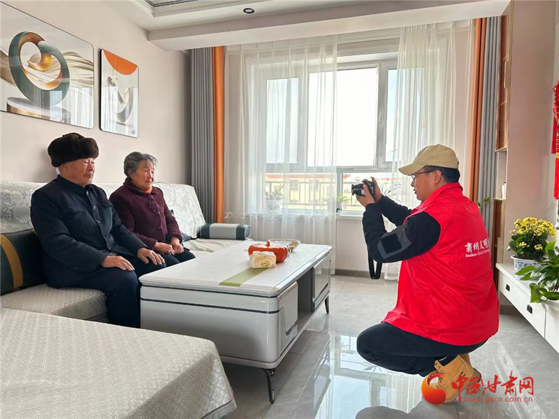 “大爺笑一笑,牽著大娘的手……”攝影志愿者們下村入戶,上門為村民拍攝全家福,用鏡頭為群眾定格幸福團圓的瞬間,留住溫馨美好記憶。從選擇服裝到整理發(fā)型,從選取角度到調動情緒,志愿者們忙的不亦樂乎,在他們的引導和鼓勵下,老兩口由開始的緊張到后來的自信從容,一幕幕美好的生活片段被記錄了下來。