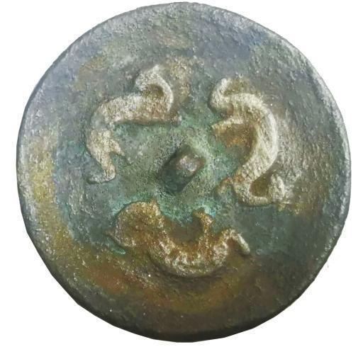 1981年出土于金川三角城遺址西崗墓群,為國家一級文物。直徑5厘米,鏡面上模鑄三條軀體蜿蜒的對稱龍紋,三龍首尾相接,環(huán)繞鏡鈕一周,展現(xiàn)了春秋戰(zhàn)國時期金昌先民杰出的青銅鑄造工藝以及非凡想象力,現(xiàn)為金昌市博物館館標(biāo)。該文物是沙井文化青銅器的杰出代表,洋溢著濃郁的草原青銅文化特色,是中西方文化交流的典型物證。