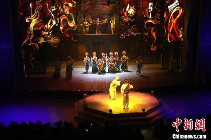2月15日晚,游客在觀看全球首部洞窟式沉浸體驗劇《樂動敦煌》。張曉亮 攝