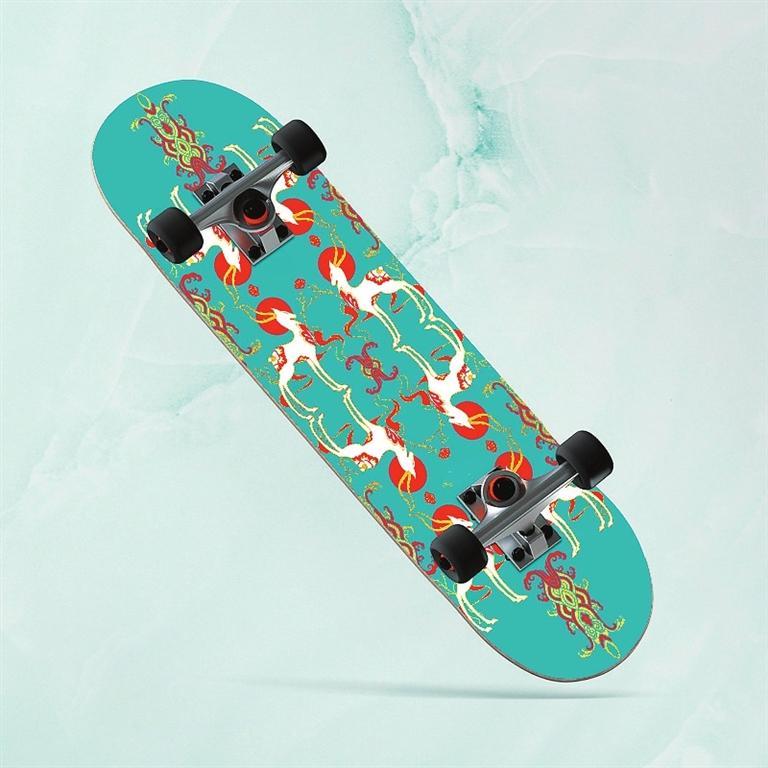 九色鹿滑板——以敦煌壁畫與極限運動相結合的設計,不僅讓傳統(tǒng)文化玩出了新花樣,同時掀起了一場以敦煌文化為代表的傳統(tǒng)文化消費潮。九色鹿滑板,既代表年輕人的活力和動力,又融合了神秘敦煌的藝術風格。以九色鹿為創(chuàng)意靈感的敦煌九色鹿系列聯(lián)名滑板,用扁平插畫風格進行再創(chuàng)作,用纖細柔美的線條凸顯九色鹿的優(yōu)美身姿,既保留傳統(tǒng)圖案的華麗精巧,也符合現(xiàn)代審美。