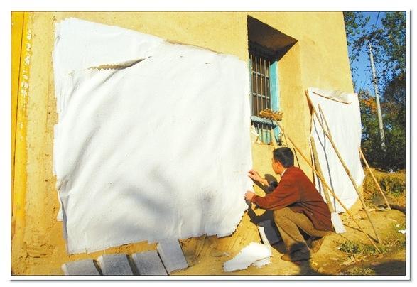 在李生武家的外墻上,我們看到一張張刷在墻上的構(gòu)樹(shù)皮紙,用手輕輕地?fù)崦鼈儯杏X(jué)附著了勞作的纖維顯得那么綿軟親切。