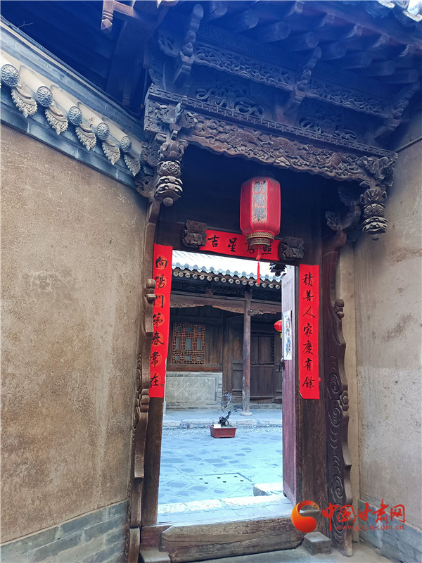 南宅子大門是一座五間大小的垂花黑漆懸山頂式建筑,門額上書明人手跡“副憲第”三字,大門當心的牌坊式門樓,更是軒朗威儀,檐下雕板刻飾精美,浮雕透雕都有,雕出的云龍鳳凰、花草海水、朝陽牡丹等吉祥圖案,托出古居氣象恢宏的美。