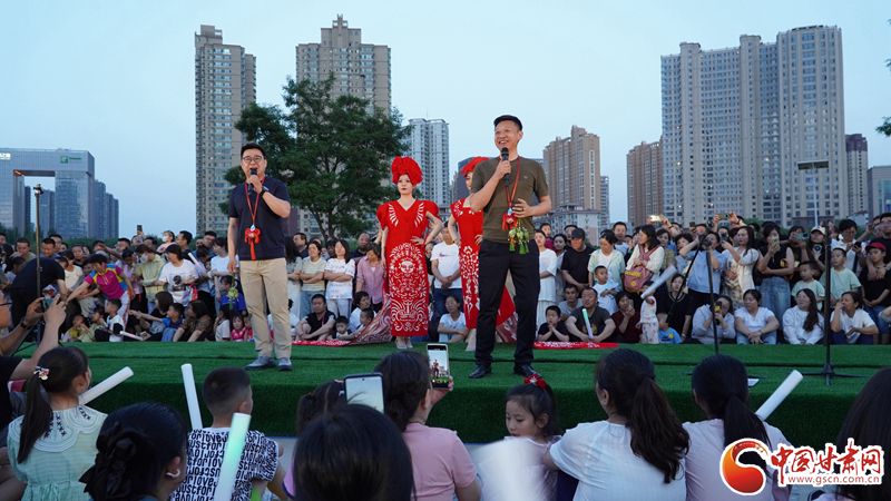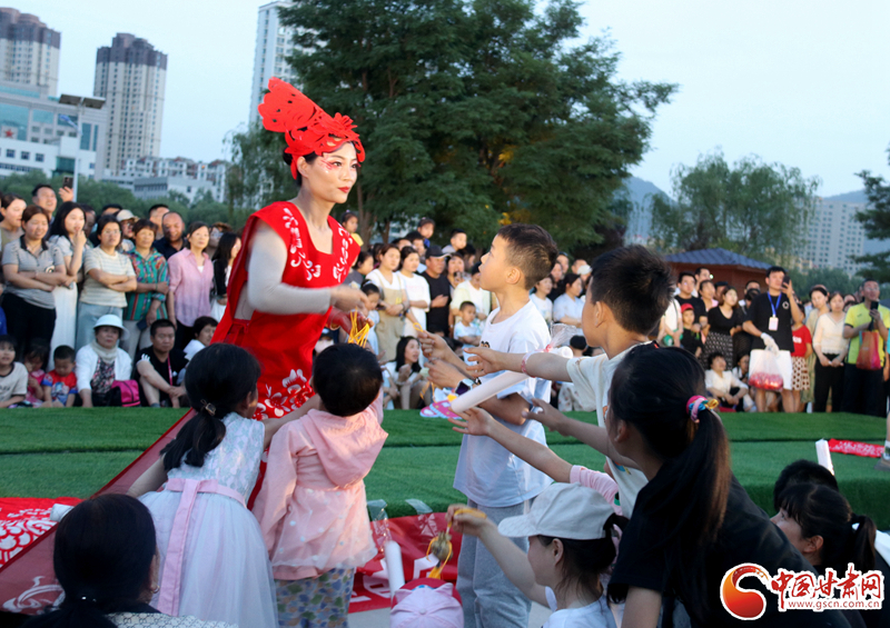 來自鎮(zhèn)原縣文化館的工作人員身著剪紙服飾,為現(xiàn)場(chǎng)觀眾送上慶陽(yáng)香包,向觀眾們展示慶陽(yáng)獨(dú)特的鄉(xiāng)土風(fēng)情。