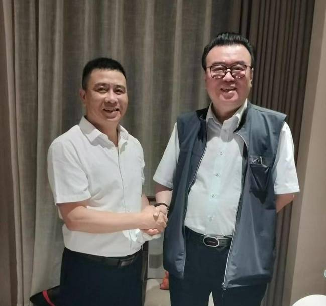 中國(guó)硬筆書法協(xié)會(huì)主席張華慶(右)與白建新(左)合影