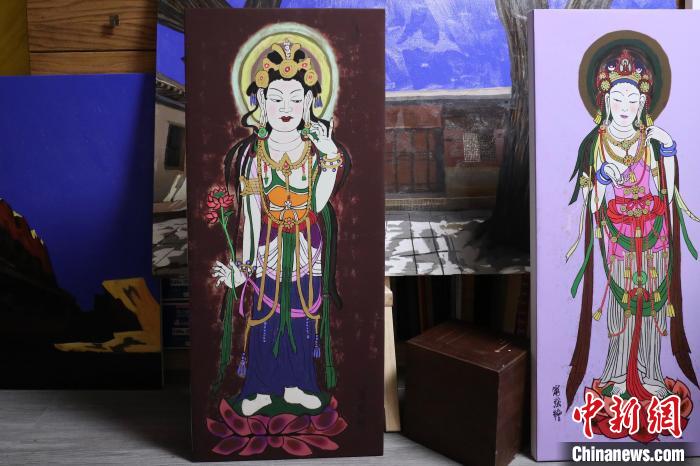 北京外國(guó)語(yǔ)大學(xué)藝術(shù)研究院院長(zhǎng)寧強(qiáng)以敦煌莫高窟壁畫(huà)為靈感創(chuàng)作的繪畫(huà)作品?!⌒煅┈?nbsp;攝