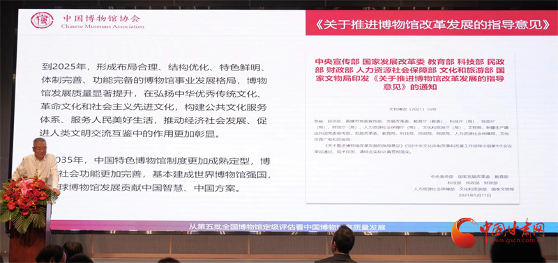 交流會上,中國博物館協(xié)會理事長劉曙光作了《從第五批全國博物館定級評估看中國博物館高質(zhì)量發(fā)展》的主旨發(fā)言,中央廣播電視總臺《簡牘探中華》節(jié)目總導(dǎo)演馬洪濤,中國建筑西北設(shè)計研究院有限公司副總經(jīng)理靳江,深圳市藝博堂數(shù)字文化科技集團(tuán)有限公司總經(jīng)理鄭洵,甘肅簡牘博物館副館長楊眉分別進(jìn)行了主題分享,為甘肅省博物館事業(yè)的高質(zhì)量發(fā)展建言獻(xiàn)策。