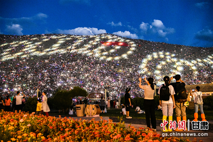 盛夏7月,每當(dāng)夜幕降臨后,甘肅省敦煌市鳴沙山月牙泉景區(qū)被精心布置的燈光點(diǎn)亮,上萬名游客手機(jī)的燈光與天空中的繁星交相輝映,營造出一種夢幻般的浪漫氛圍。