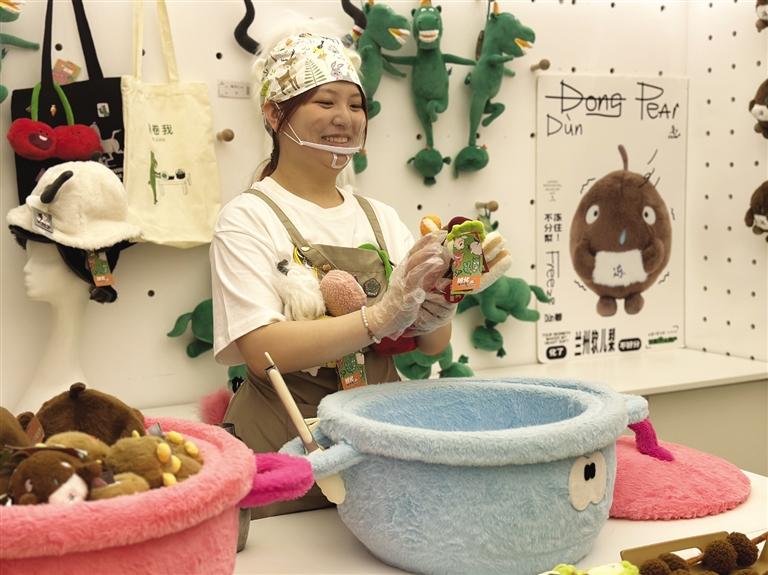 記者看到,“麻辣燙”和“砂鍋”毛絨玩具花束有多個(gè)單品,模擬了丸子、蟹排、年糕、香菇等菜品。而且每款都有自己的名字——嘻嘻西蘭花、香香香菇、黏黏年糕、哇哇菜、謝謝蟹排、玩去吧丸子??蓯塾腥さ拿q玩具再次走紅網(wǎng)絡(luò),成為不少“大朋友”的必入文創(chuàng)單品。連日來,這款單品引發(fā)近20萬人涌入天貓旗艦店搶購,“麻辣燙”幾度售罄。甘肅省博物館文創(chuàng)中心負(fù)責(zé)人崔又心介紹,“麻辣燙”火了之后,天貓店客服每天都會(huì)收到來自消費(fèi)者“求補(bǔ)貨”留言。