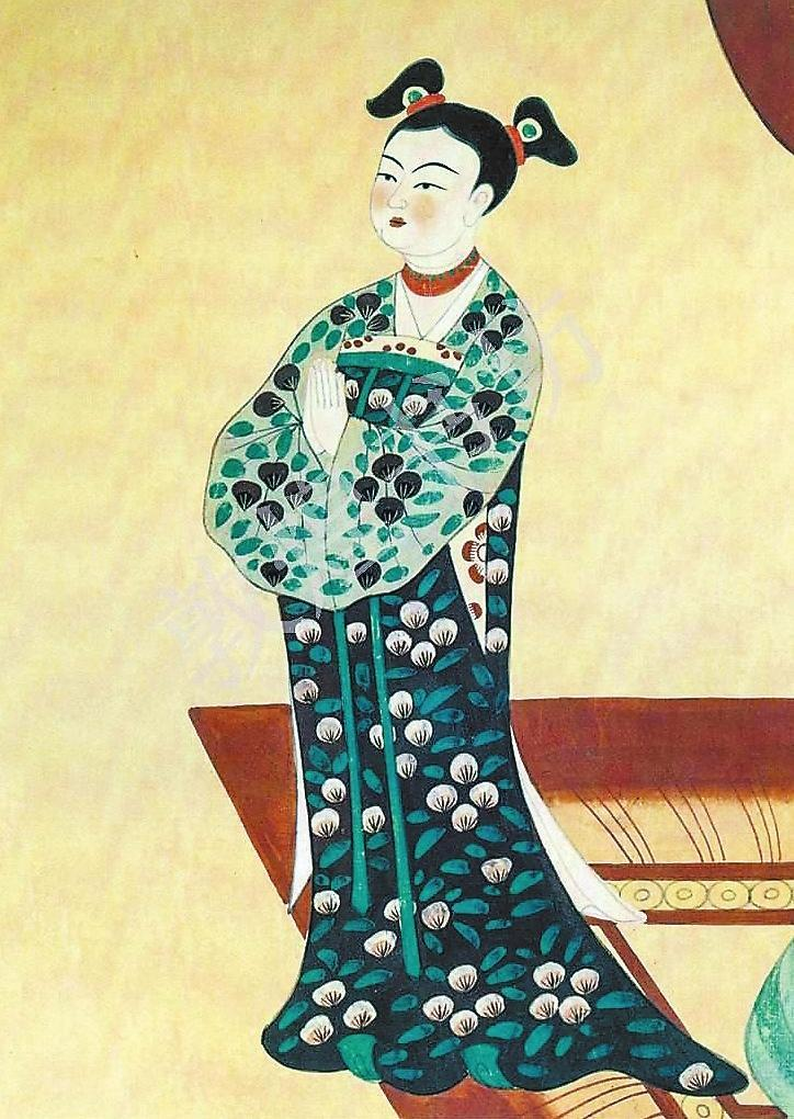 我們都知道服裝最經(jīng)典的配色是黑白灰,尤其是黑白配,其實這種配色也是敦煌壁畫中的經(jīng)典。在莫高窟第100窟壁畫中有一幅“舞者圖”:畫面上男舞者被定格在一個扭腰送胯雙臂屈伸的舞蹈動作中,他上身穿著中長款的黑色圓領(lǐng)長袖缺胯衫,用白色帛帶束腰。下身則搭配一條白底團花大口褲。在莫高窟第12窟壁畫中有一幅“供養(yǎng)人圖”:畫面上一對母女身著襦裙,上襦下裙的著裝風(fēng)格相當于今天服飾的無袖連衣裙加一件長袖開衫。在畫面上女兒的上衣和媽媽的裙子是同樣的藍色,女孩的裙子和媽媽上衣是同為赭色,只不過各自的花紋樣式不同,但是母女倆胸前的結(jié)帶卻是同色同花、一模一樣。畫師如此別出心裁的呼應(yīng),顯得既溫情又醒目。