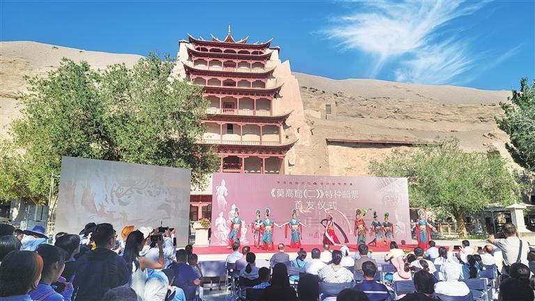 原標(biāo)題:濃縮方寸之間 傳播敦煌文化——寫在《莫高窟(二)》特種郵票發(fā)行之際