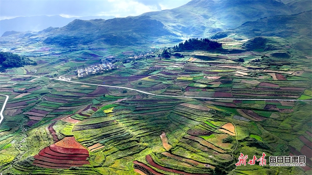 高山花海,紅土梯田,秋日的隴南武都云上馬營(yíng)猶如一頂七彩的花環(huán),圍繞在高山之巔,清新濕潤(rùn)的空氣中,飄著淡淡的花香和藥香,光影交織在松樹林和村莊之間,一陣風(fēng)吹過,仿佛整片大地都與陽(yáng)光在輕柔地呼吸。