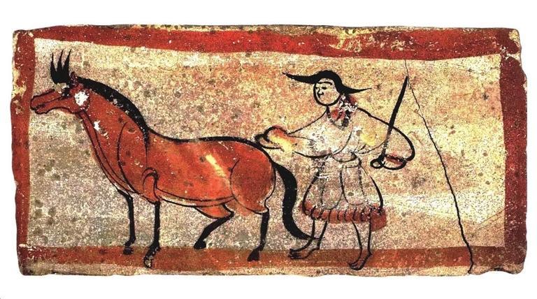《牧馬圖》,1979年甘肅省嘉峪關市新城12號墓出土。