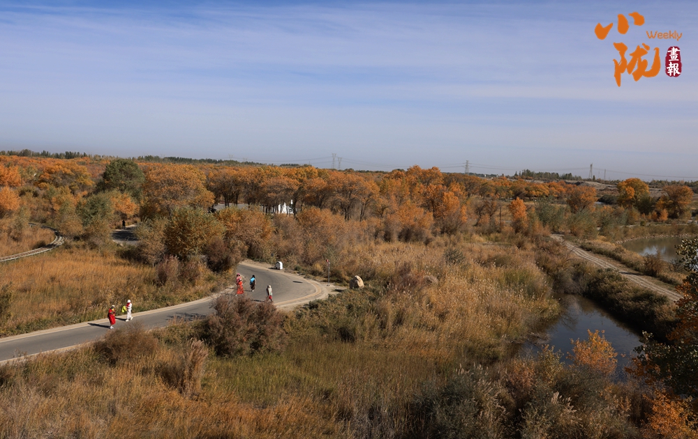 十月胡楊披“金甲”。深秋季節(jié),連片的胡楊樹林在陽光的照射下熠熠生輝,色彩斑斕、美不勝收。