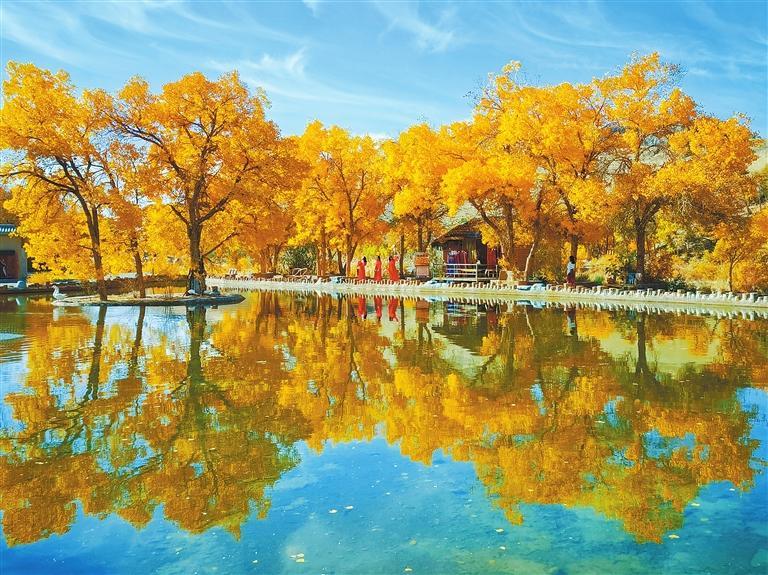 層林盡染的興隆山國家級自然保護區(qū),紅黃綠相間、滿目絢麗、美不勝收;置身在民樂縣西區(qū)公園,近可抬眼觀紅葉,遠可舉目望雪山,天如洗,湖如鏡,令人心曠神怡;以壯麗胡楊林景觀聞名遐邇的阿克塞縣胡楊峽景區(qū),金黃色的葉片在陽光下閃閃發(fā)光,形成一道亮麗的風景線;在蔚藍天空的映襯下,秋日的陽關遺址更顯雄渾肅穆;暖陽下,旅客乘坐蘭張高鐵出行,欣賞秋天饋贈的每一道風景……
