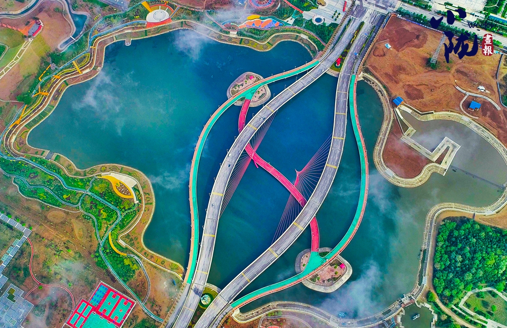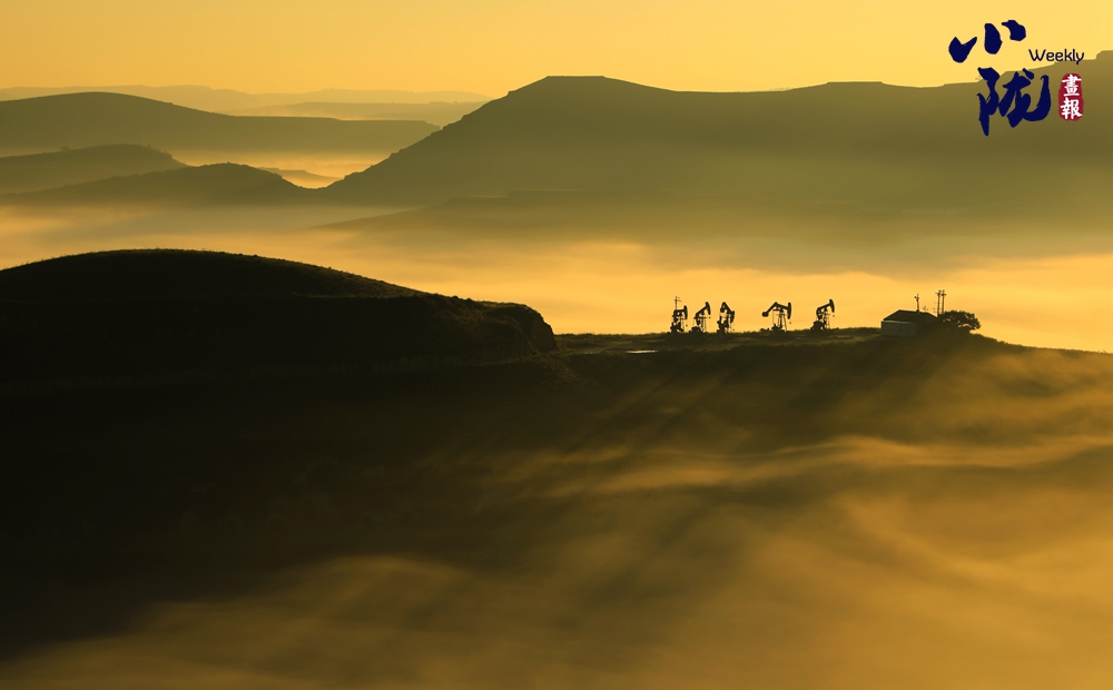 傍晚,空中泛起淡淡云霧環(huán)繞在溝壑之間,呈現(xiàn)出華池別樣的霧海景觀,遠(yuǎn)處一架架抽油機(jī)在上下舞動,“舞姿”靈動而優(yōu)美。