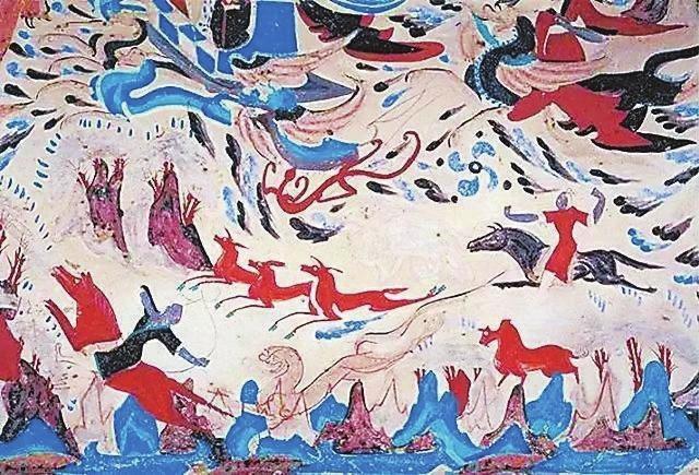 在莫高窟第249窟壁畫中有一幅“行獵圖”:畫面上都是些體型巨大的動物,有體態(tài)矯健的猛虎、疾馳俊逸的鹿群、整裝待發(fā)的獅子等,有在奔馳的駿馬上拈弓搭箭窮追不舍的獵人,還有在飛奔的駿馬上淡定轉(zhuǎn)身從容射虎的獵人。整個畫面既緊張又美好,使人不由得對畫師精湛的技藝心悅誠服。唐代詩人王維在詩作《觀獵》中寫道:“風(fēng)勁角弓鳴,將軍獵渭城。草枯鷹眼疾,雪盡馬蹄輕。忽過新豐市,還歸細(xì)柳營?;乜瓷涞裉?,千里暮云平。”意思是說將軍的獵騎,飛馳在渭城的近郊。風(fēng)中傳來呼嘯的弦聲。已枯的野草,擋不住尖銳敏捷的鷹眼,積雪后飛馳的駿馬馬蹄會愈加輕盈。據(jù)文獻(xiàn)記載,唐宋時期人們打獵時多有一種“西北望,射天狼”的豪情!在莫高窟第85窟壁畫中還有一幅“行獵圖”就形象地反映了唐人狩獵的情景:畫面上的四個健碩獵人正在整裝出獵,他們著裝統(tǒng)一:頭戴幞頭,身穿缺胯衫,足蹬半腰靴。打獵的裝備也很不同:有人胳臂上架鷹、有人單手牽犬、有人持弓挎箭囊,甚至還有一人手持利斧。