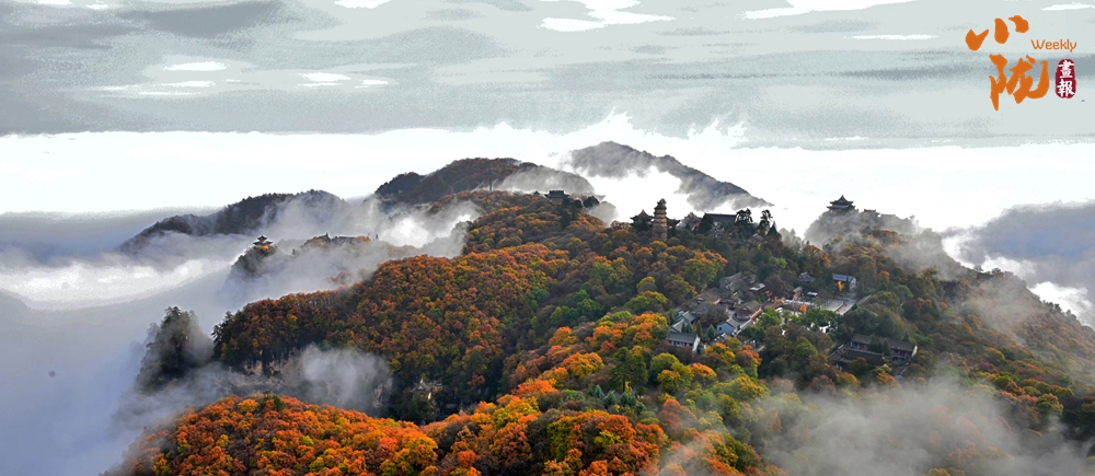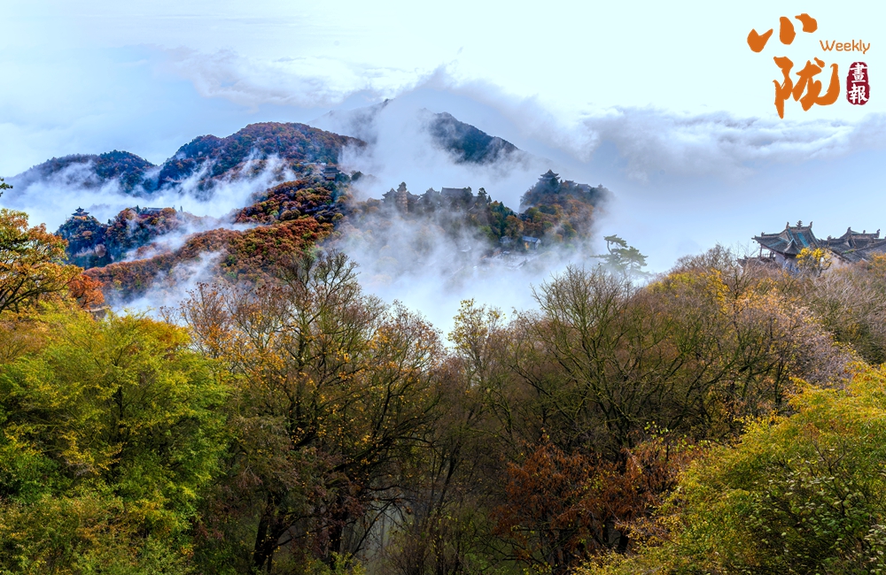 云霧繚繞,金黃的葉子似金色海洋,覆蓋山脈,在陽(yáng)光照耀下散發(fā)著溫暖光芒,仿佛為崆峒山披上了璀璨外衣。