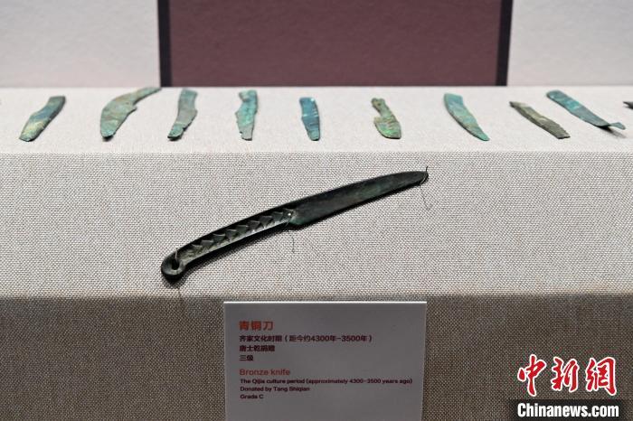 11月27日,甘肅省臨夏州廣河縣齊家文化博物館展出的青銅刀。 九美旦增 攝